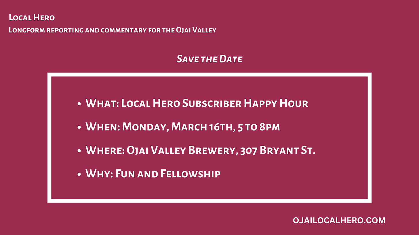 Second, the invitation. Folks, it’s time for another Subscriber Happy Hour! Please save Monday, March 16th to gather with fellow readers for discussion and community. This will be our fourth gathering — it’s always a fun time with a diverse bunch. Note: you do NOT need to be a paid subscriber to attend the event. Please feel free to bring a friend or family member.