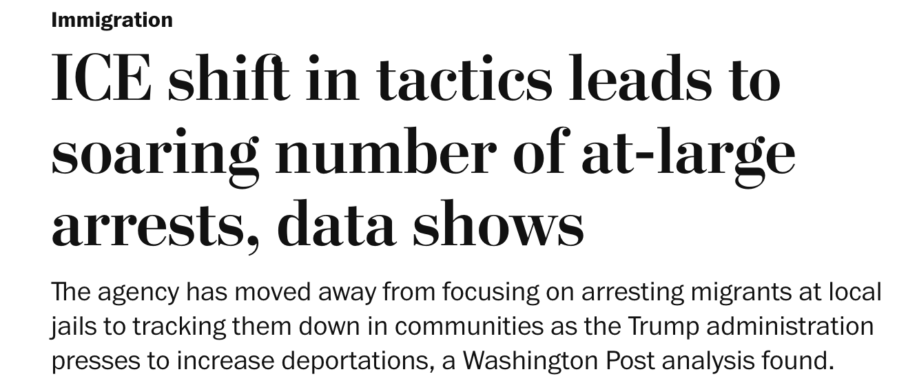 There are two things I want to highlight before moving on. First, ICE can ask an individual’s immigration status, but that individual has the legal right to remain silent. Second, there’s an ongoing legal fight about what constitutes “reasonable suspicion” that an individual is in the U.S. illegally.