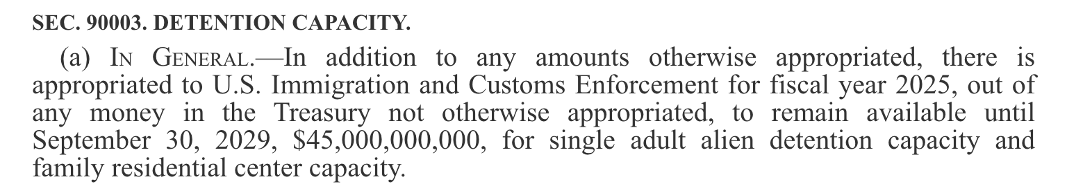Sam’s right. Recall: President Donald Trump and Republican members of Congress passed President Trump’s “One Big Beautiful Bill Act” on July 4, 2025 on a party-line vote. The bill, in addition to slashing social safety net programs like Medicaid and SNAP, dumped $165 billion into the Department of Homeland Security, with $45 billion going to detention centers and another $30 billion going to ICE.
