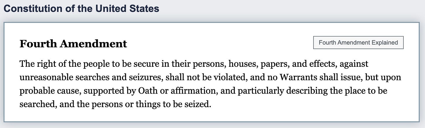 Remember: the Fourth Amendment to the Constitution protects “the right of the people… against unreasonable searches and seizures... but upon probable cause.”