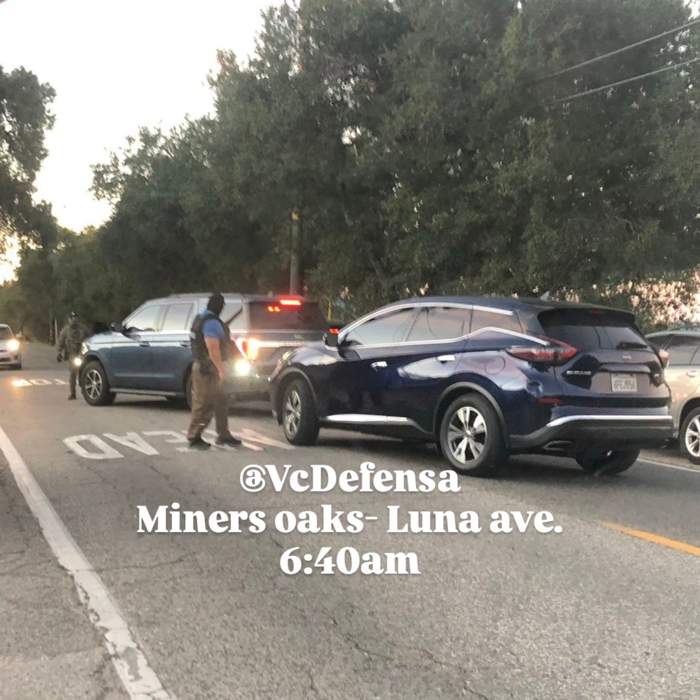 Cantu, a volunteer with immigrants’ rights organization VC Defensa, began driving toward Meiners Oaks from the Mira Monte area at approximately 6:40 a.m. on Dec. 16th, he said. On a side street off of El Roblar Ave., Cantu said he witnessed an individual with their hands behind their back being put into an unmarked vehicle by a masked officer. The vehicle, a blue Nissan Murano, had dark-tinted windows and flashing emergency lights, Cantu observed.